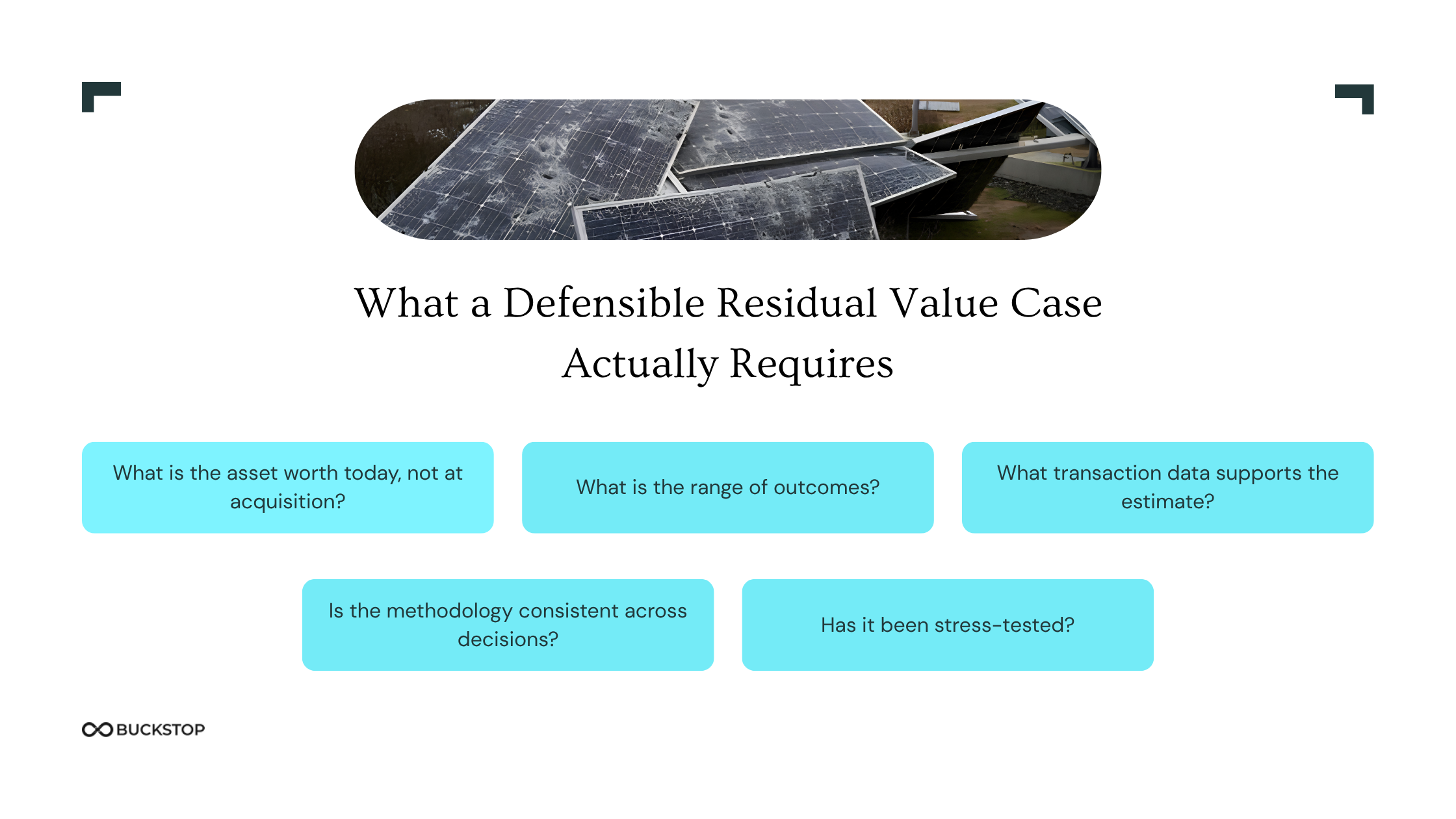 Buckstop is built for exactly this problem. Teams managing capital, risk, and value recovery use the platform to replace static analysis with transaction-backed residual value intelligence that holds up when it matters most. Book a demo to see how it works.