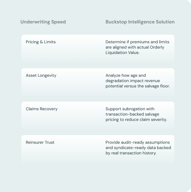 Buckstop brings transaction-backed intelligence into underwriting decisions before risk is bound and before claims occur.